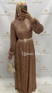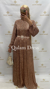 Ornée de sequins scintillants, la robe ALYSHA capte la lumière, tout en créant un effet de éblouissant.